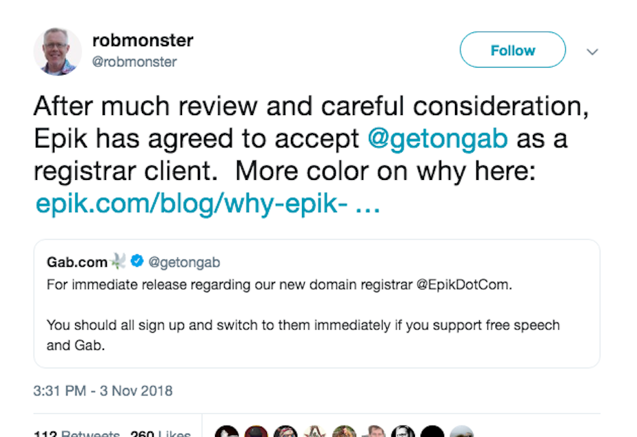 In a press release on Saturday, Epik's CEO Rob Monster explained why he had decided to support Gab's cause.